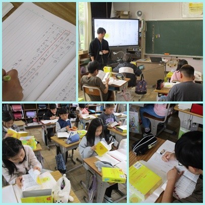 4年生の国語の学習では、「白いぼうし」を読んで感想を書いていました。文中に出てくる分からない言葉を国語辞典で調べながら、読み進めていました。言葉の意味を丁寧に捉え、豊かに読み取る。学びを深めている姿が見られました。