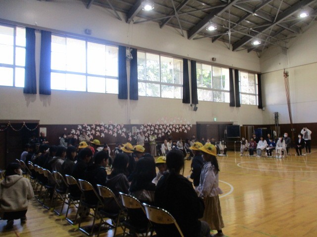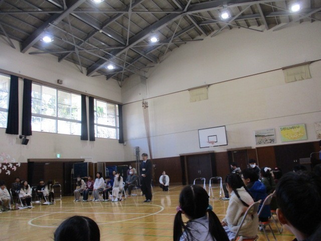 最後に、校長先生から「6年生のみんなの前に行こう。」とのお話があり、全校児童が体育館でそれぞれ6年生にお礼を言いました。