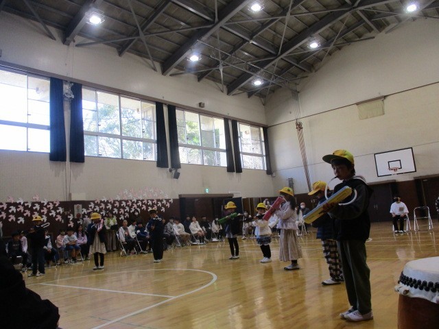 けんばんハーモニカの合奏や、なわとび・マット運動、計算カードの取組、生活科で調べたことをスライドにまとめたことを発表しました。一生懸命取り組む子どもたちの姿に、保護者の皆様から温かい拍手が送られました。