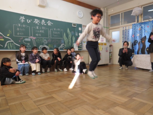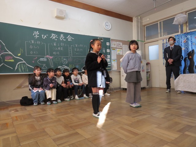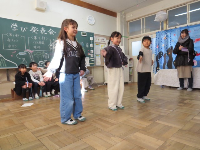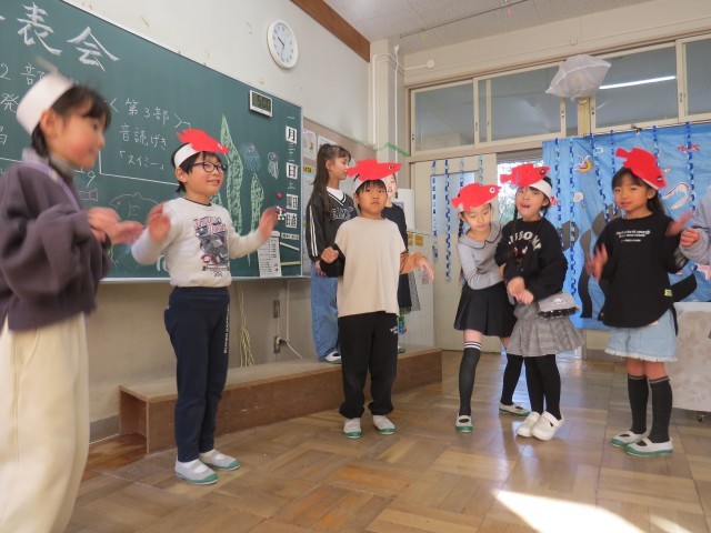 合唱や合奏、個人発表ではダンスやなわとび、九九、暗唱、歌など、これまでの学習の成果を生き生きと発表しました。また、「スイミー」の音読劇では、役になりきって表現する姿が見られ、すてきな物語の世界が広がりました。