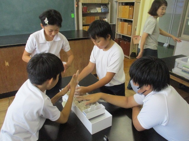 理科「流れる水のはたらき」実験
