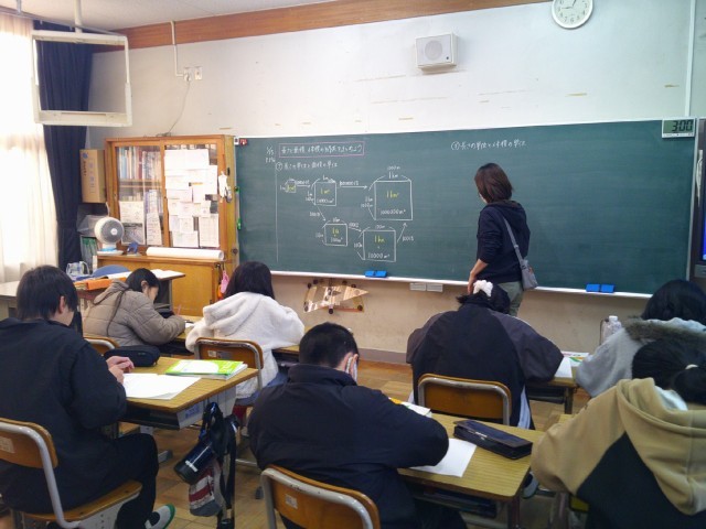 今日の家庭科は栄養職員の野内先生を招いて「池野小学校の給食の献立はどのようなことを考えて作られているだろうか」について学びました。「成長期のみんなさんのことを考えて、赤、黄、緑の食材をバランス良く使い、栄養のことを一番大切に考えています。また、旬の食材をなるべく多く取り入れ、予算のことにも気をつかいます。」というお話がありました。さあ、みなさんも実際に給食の献立を立てることができるでしょうか。