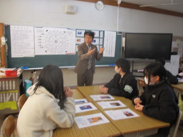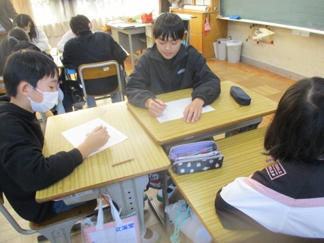 二十四節気のうち、冬の六節気(立冬・小雪・大雪・冬至・小寒・大寒)について学習しました。冬の俳句から情景を思い浮かべて物語を書く活動を通して、感じ取ったことを友達と伝え合いました。児童同士が互いの意見に耳を傾け、学びを深められるよう発問や交流の場を工夫し、対話的な学びの充実を図る授業となりました。