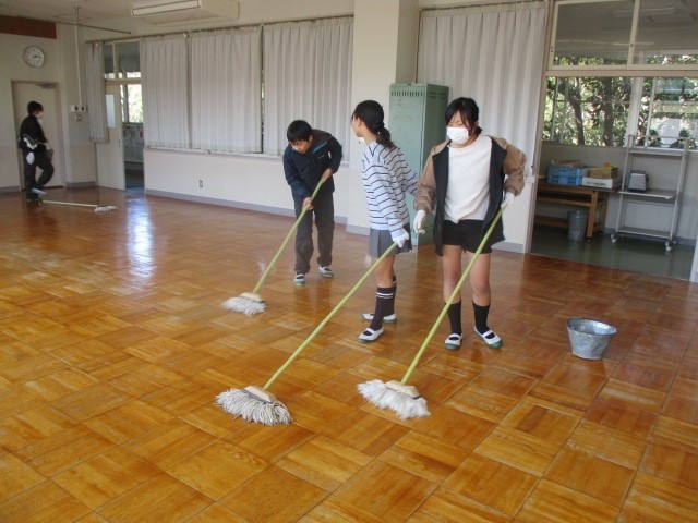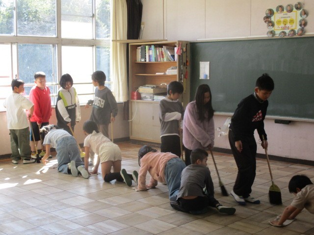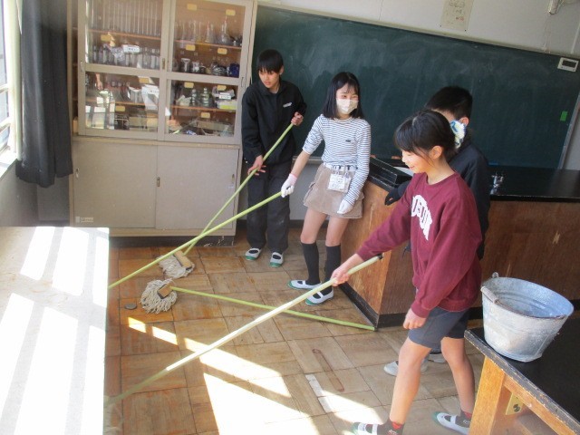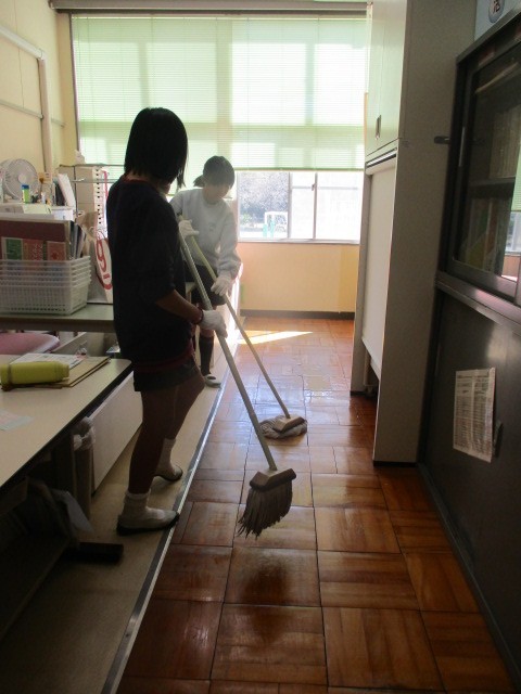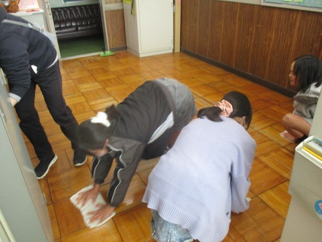 6年生が奉仕活動として、今日は保健室・理科室・図画室などの油ふきに取り組みました。他学年の児童も、教室内の清掃や水ぶきを協力してくれています。