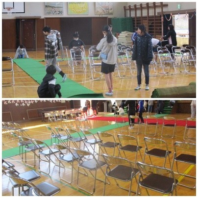 4・5年生は、会場準備に取り組みました。よい式になるように、一つ一つ確認しながら、協力して進めています。6年生は卒業式に向けての練習を重ねています。