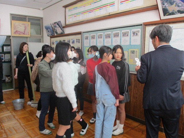 現中学1年生の先輩から、中学校の学習や生活、部活動などについて説明を受けたあと、校内の案内をしてもらいました。