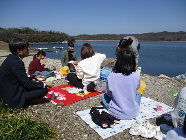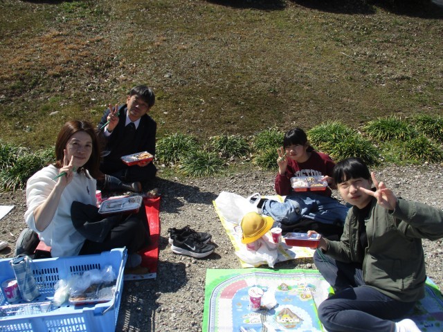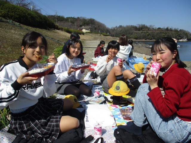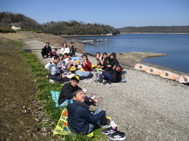 今日は晴天にも恵まれ、6年生は思い出給食として入鹿池へ出かけ、仲間と楽しく会食を行いました。