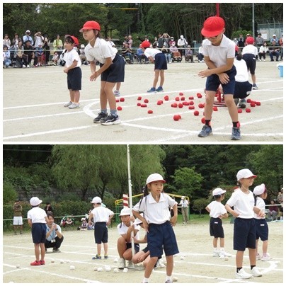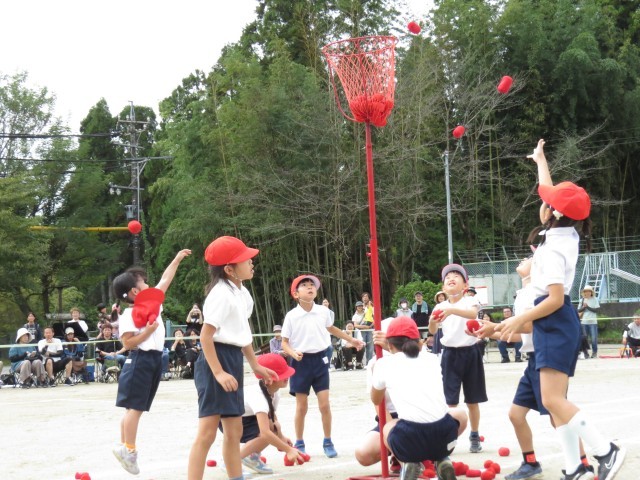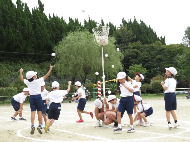 チェッチェッコリのダンスを元気よく踊って玉入れをしました。たくさんの玉が入りましたね。