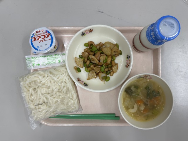 ・白玉うどん ・牛乳 ・和風坦々うどん ・枝豆と里芋の揚げ煮 ・ヨーグルト