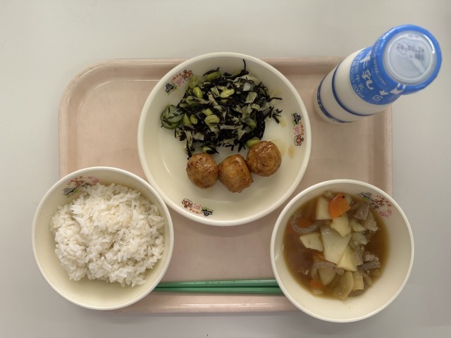 ・麦ごはん  ・牛乳  ・肉じゃが  ・ごぼう入りつくね  ・枝豆のひじき和え