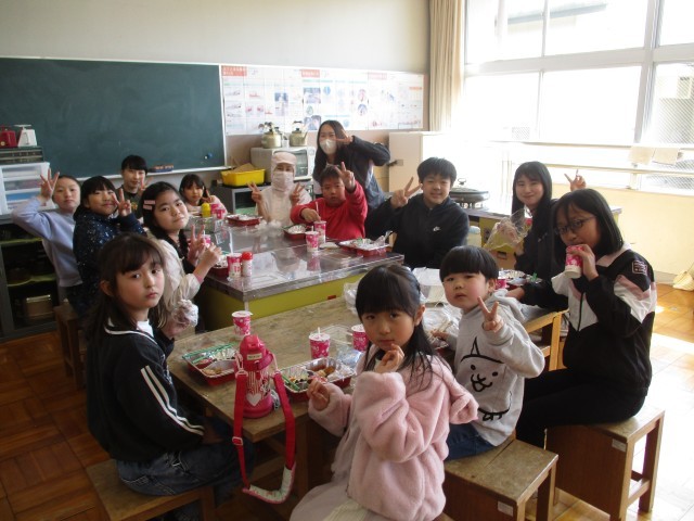 【栄養士より】今日は、今年度最後の給食です。みなさんから「おいしかったよ」や「○○食べられたよ」と言った声をたくさん聞け、栄養士、調理員ともに大変嬉しかったです。来年度もさまざまな味や食べ物に親しめるよう、献立を考え、調理していきます。さて、今の教室、今の担任の先生と給食を食べるのは、今日が最後です。ぜひ、味わって食べてくださいね!