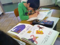 今日の図工の時間は、ステンドBOX作りです。下絵の段階からステンドグラスのようなカラーフィルムがどのような色を放つのか、考えながら描きます。タブレットで調べながら、みんな思い思いの絵を描いています。完...