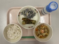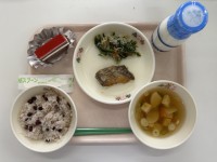 【今日の献立】・赤飯 ・牛乳 ・ホキの揚げ煮 ・野菜のなめたけ和え ・お祝い汁 ...