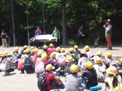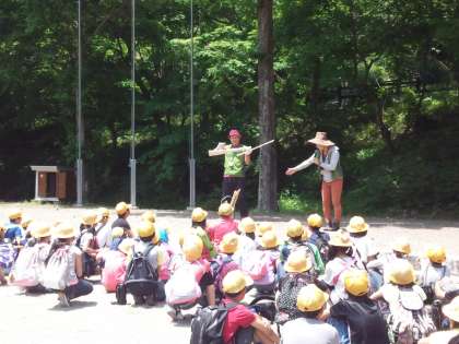 自然園の方から、布団のしきかたや炊事の話を聞いています!