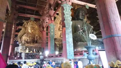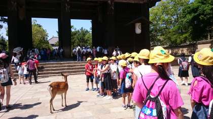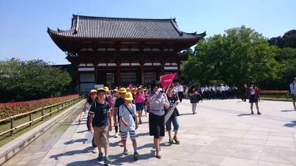 鏡池の前で記念撮影をした後、大仏殿の見学をしました。この後は班別行動です。