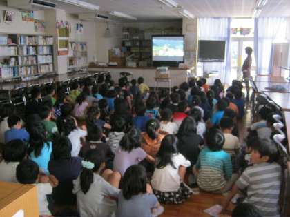 4年生が、2,3時間目に図書室で、ミュージカル「サウンドオブミュージック」のDVDを視聴しました。これは、音楽の鑑賞の教材で、サウンドオブミュージックに出てくる、楽曲をストーリーと合わせて鑑賞するものです。情景や場面を想像しながら、鑑賞することができました。