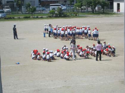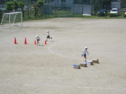 1時間目に、運動場から元気な声が聞こえてきました。2年生が、学年体育で障害物競走をしていました。段ボール箱を飛び越え、コーンの周りを1周回って、タイヤを飛び越えて、トラックを半周走り、次の人にバトンタッチしていきます。学級対抗で行い、みんなで声援を送りながら取り組むことができました。