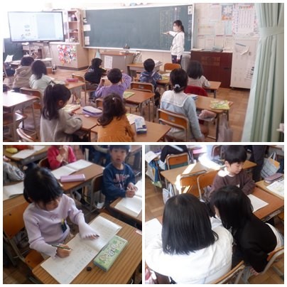 授業の様子です。今日は2年生と3年生と5年生が秋の遠足に行きましたので、1年生と4年生と6年生の授業の様子です。