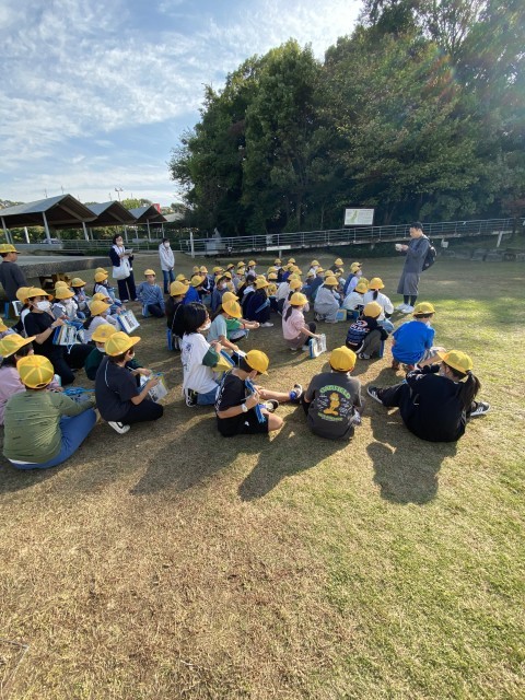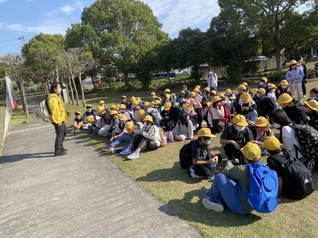 4年生はモンキーワークにモンキーセンターに来ています。まずはビジターセンターでセンターの方からお話を聞いています。