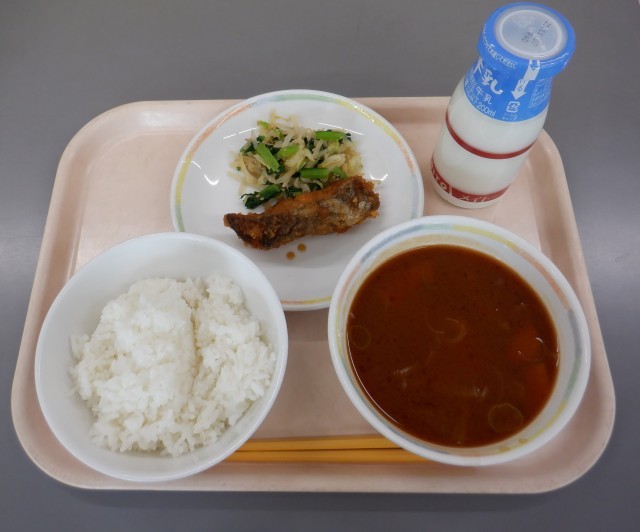 今日は、就学時健診があるので、いつもより少し早めの給食です。