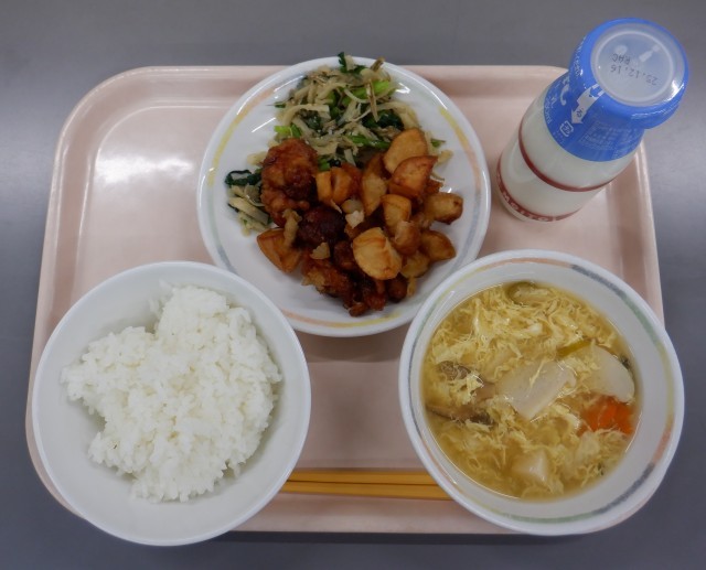 今日は、2.3.5年生が遠足なので、1.4.6年生のみの給食です。