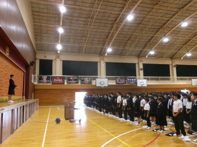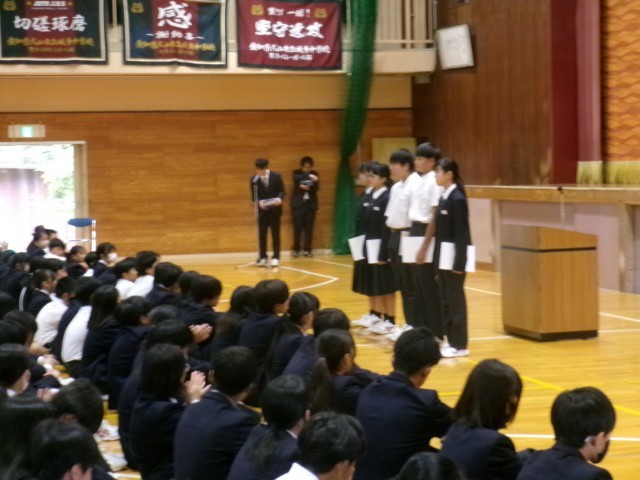 生徒会役員の認証式では、生徒会長が学校をよりよくしたいという思いを語ってくれました。