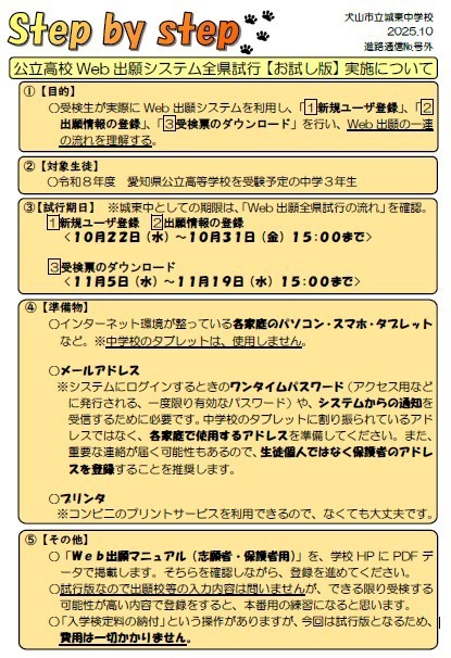 10月末にかけて、「公立高校Web出願の全県試行」が行われます。
