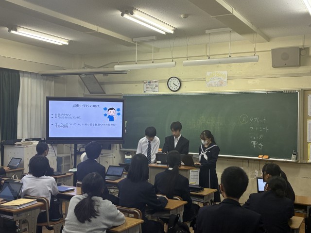 城東中学校がよりよくなるための提案を考え、プレゼンを作り発表する準備を進めています。