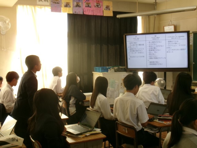 犬山はどのような場所かを、プラス面、マイナス面、おもしろいところという視点で個人で考えた後、グループで話し合いました。