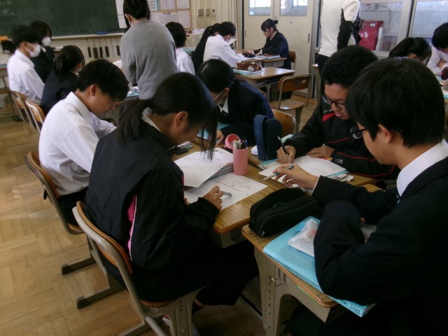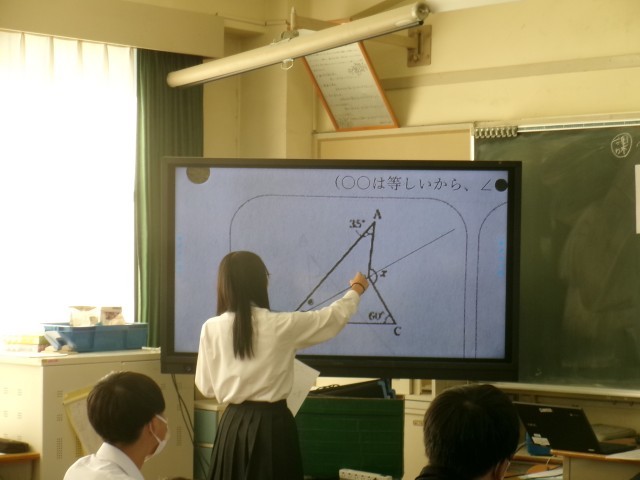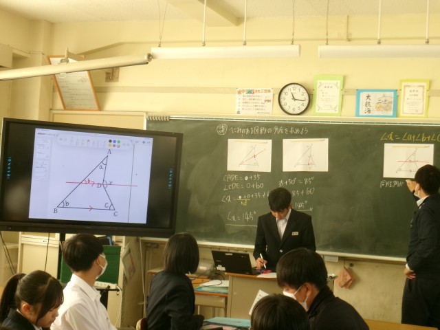 生徒たちは図形の性質を理解しながら、論理的に角度を導き出す力を養いました。