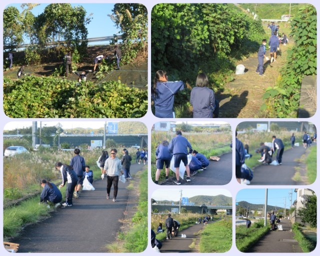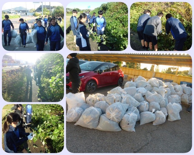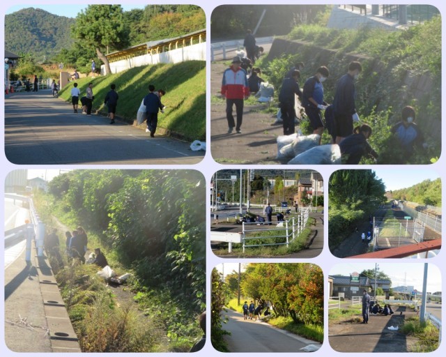 本日(28日)、全校生徒による地域美化活動を実施しました。この活動は、本校の大切な伝統行事として43年目を迎え、脈々と引き継がれてきたものです。生徒たちは、国道沿いや学校周辺、校内など、それぞれの活動場所に分かれ、美化活動に取り組みました。今後もこの活動が、地域や学校の場所を大切に利用する心へとつながっていくことを期待しています。