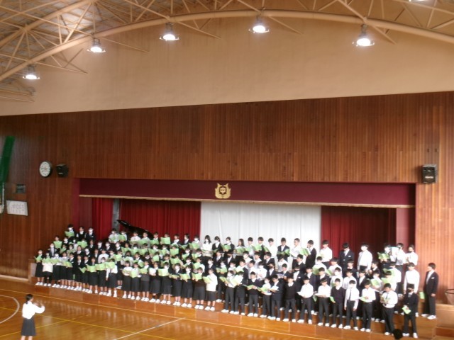 来週に迫った合唱発表会に向けて、1年生は体育館で「My Own Road」の練習を行いました。