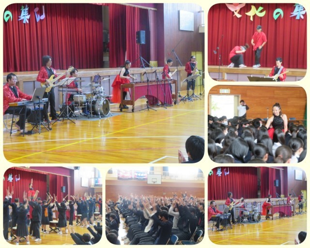 文化の集い1日目、「アンサンブル ヤア(Ensemble YEAH)!!」の皆さんをお招きして、芸術鑑賞会を開催しました。今年のテーマは「耳と目で音楽を楽しむ」です。演奏が始まると同時に、様々な楽器が調和し、その躍動感あふれるパフォーマンスに会場全体が一気に引き込まれました。演奏には時折ダンサーも加わり、視覚的にも楽しい演出で、音楽の持つエネルギーを見て感じることもできました。