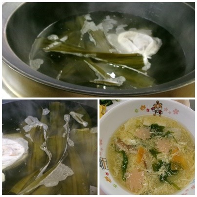 今日の給食のかきたま汁も、むろけずり節と昆布の2つのだしからじっくりと時間をかけて出し汁をとって、かき玉汁を作りました。干し椎茸の戻し汁や具材から出るうま味も加わり、うま味の相乗効果でさらにうま味、香り、コクがでています。秋も深まり、学校の周りのもみじも赤く色づき始めました。もみじ寺として知られている犬山の寂光院(じゃっこういん)もみじ祭りの時期です。赤くそまったもみじの様子を、すすりおろした人参や汁物であらわしました。