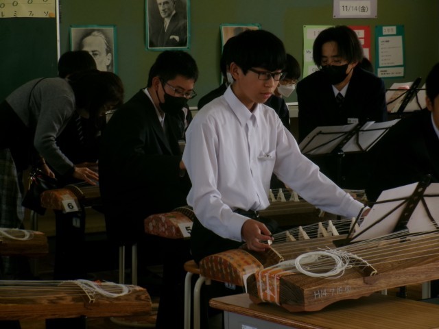 【1年生】音楽 箏の音色に包まれる特別授業