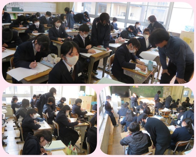 1年生の数学では、円とおうぎ形について学習をしています。半径が等しい円とおうぎ形について、中心角の比、弧の長さの比、面積の比がそれぞれ等しいことを手掛かりにして、おうぎ形の中心角の大きさ、弧の長さ、面積を求める問題に挑戦しています。