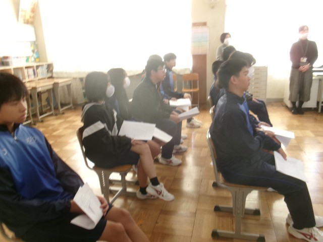 交流会では、まず小学校のみなさんから、工夫をこらした出し物を披露していただきました。画面越しではありましたが、楽しさや温かさがしっかりと伝わり、視聴していた城中生の表情も自然とほころんでいました。
