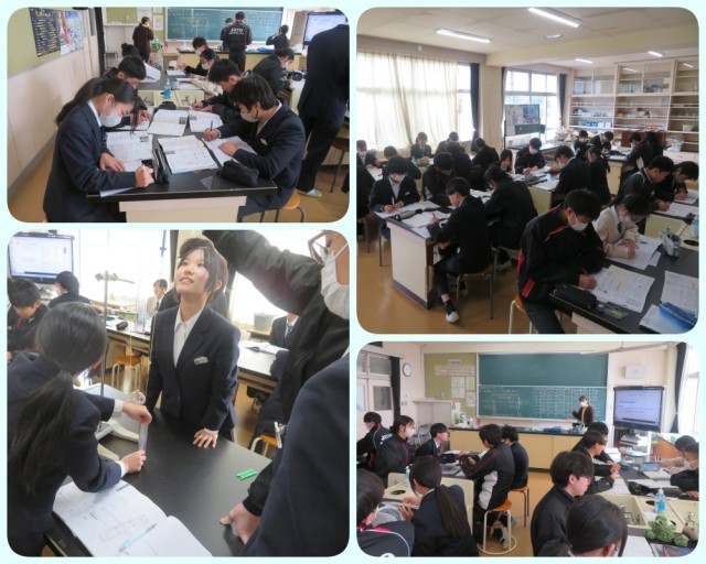 第3学年理科では、動滑車を使用する際、直接引き上げる場合と比べて「引く力の大きさ」や「仕事の大きさ」にどのような違いが生じるかを検証しました。班ごとに比較実験を行い、得られたデータから動滑車の仕組みについて考察をまとめました。「小さな力で済むなら、仕事の量(大きさ)も小さくなるのではないか」と予想しましたが、実験データをもとに計算した結果、「どちらの方法でも仕事の大きさは変わらない」ということが分かりました。