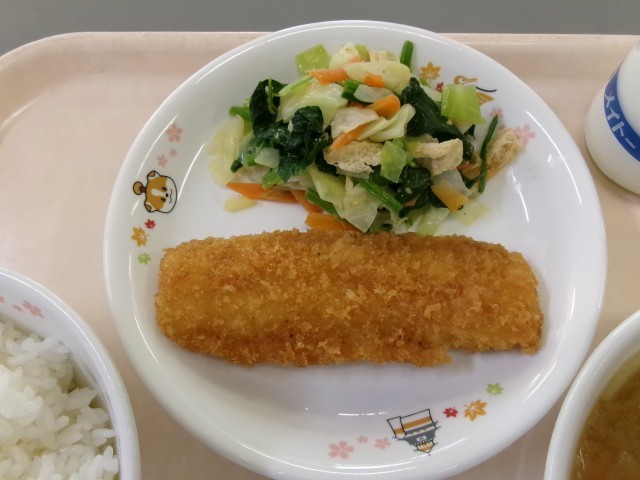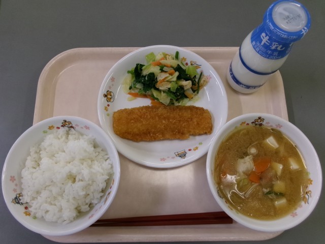 本日は、リクエスト第2位に輝いた『いかフライのレモン煮』です! 給食室で揚げたてのアツアツな「いかフライ」を、調理員さんが一つひとつ丁寧に特製のレモンだれにくぐらせてくれました。衣に染み込んだ甘酸っぱい味わいを、ぜひ堪能してください。また、和え物には今が旬の「ほうれん草」を使用しています。旬の食材は栄養価が高く、味も格別です。野菜は加熱することでカサが減り、驚くほどたっぷり食べられます。給食では、苦手な野菜もおいしく食べられるよう工夫を凝らしていますので、ぜひバランスよく味わってみてください。ちなみに『いかフライのレモン煮』は、夏に全校で実施したアンケートでもおかず部門の上位に入った人気メニューです。犬山市のホームページでレシピが公開されていますので、ぜひお家でも再現してみてくださいね!