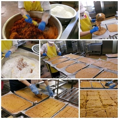 ウクライナ語で「キャロットケーキ」を意味する郷土菓子です。 給食室で、たっぷりの人参を皮ごとすりおろし、小麦粉や卵を混ぜて丁寧に焼き上げました。人参の優しい甘みが広がります。