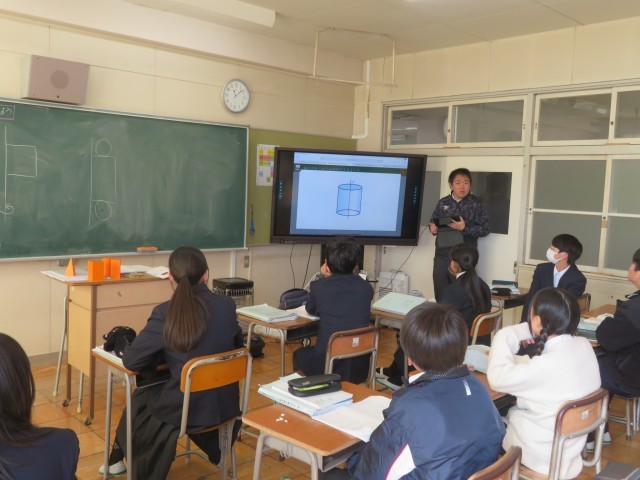 1年生の数学では、現在「空間図形」の学習に取り組んでいます。 平面図形をある軸を中心に一回転させてできる「回転体」について深く考えました。長方形を回せば円柱に、直角三角形なら円錐に、そして半円なら球になります。生徒たちは「どんな図形を回せば、その形になるのか?」と図形を立体的に捉える力を養いました。授業の最後には、「ドーナツ型」について考えました。「どんな図形を、どのように回せばドーナツのような形ができるのか?」という問いに対し、試行錯誤しながら図形への理解を深めていました。