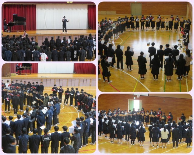 2月に行われる「橋渡しの会」に向け、1・2年生による合唱練習が本格的に始まりました。この会は、1・2年生が卒業を控えた3年生へ感謝の気持ちを込めて合唱を披露する行事です。本日は2年生のリーダーが中心となって、1年生との合同練習を行いました。本番当日、最高の歌声を届けられるよう、これから練習を重ねていきます。