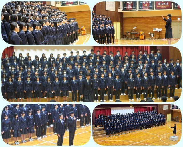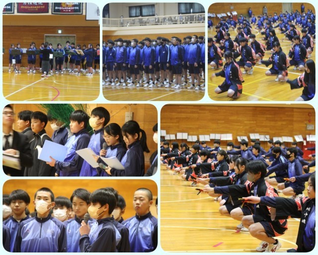 20日午後、3年生から下級生へと伝統を引き継ぐ「橋渡しの会」が開催されました。吹奏楽部の演奏に迎えられて幕を開けた第一部。まずは1・2年生が、3年生から受け継いだ合唱曲「心の瞳」と、「よさこいソーラン」を披露しました。先輩方への感謝を込めて表現する姿が印象的でした。それに応える3年生は、城東中学校の校歌を「合唱」として披露しました。これまで全校で歌ってきたのは「斉唱」でしたが、3年生が奏でるハーモニーとしての校歌を、1年生は初めて耳にすることとなりました。普段の斉唱とは一味違う合唱に魅了されました。続く合唱「青い鳥」は、3年生が大切に歌い続けてきた曲です。11月の発表会からさらに磨きがかかったその歌声は、聴く者の心を揺さぶる圧巻の響きでした。