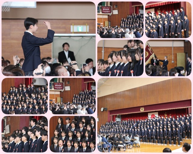 本日、ご来賓の皆様、そして保護者の皆様に見守られる中、第79回卒業証書授与式を挙行いたしました。厳かな雰囲気の中、卒業生一人ひとりが立派に学び舎を巣立っていきました。式後には、お別れのセレモニーが行われました。これまで練習を積み重ねてきた合唱「青い鳥」では、深みのある歌声が会場に響き、続く「正解」では、生徒たちの等身大の気持ちを映し出した歌詞に、会場全体が強く引き込まれました。最後の歌詞「よーい、はじめ」という言葉で締めくくられた瞬間、惜しみない拍手が会場を包み込みました。城東中学校での生活は一つの節目を迎えますが、同時に新たな人生の幕が上がります。卒業生の皆さんの未来が、幸多きものになることを心より願っています。