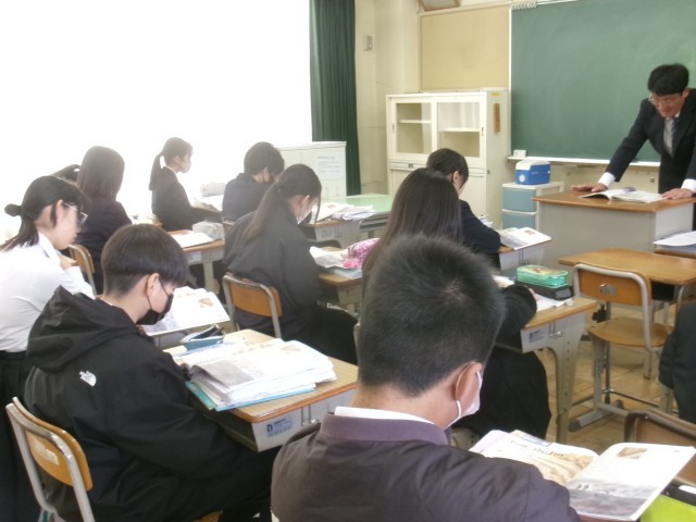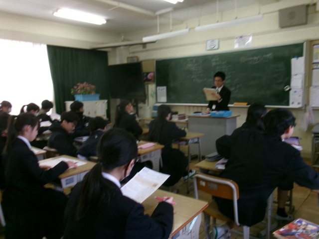 1年生の英語では、国語でも学習する有名な物語『ごんぎつね』の英文に取り組んでいます。すでに内容を知っている物語を英語で読むことで、「日本語ではこう表現されるけれど、英語ではどうなるのか」といった違いに気づきながら学習を深めています。親しみのある題材を通して、英語の表現やリズムへの関心を高めることができる時間となっています。