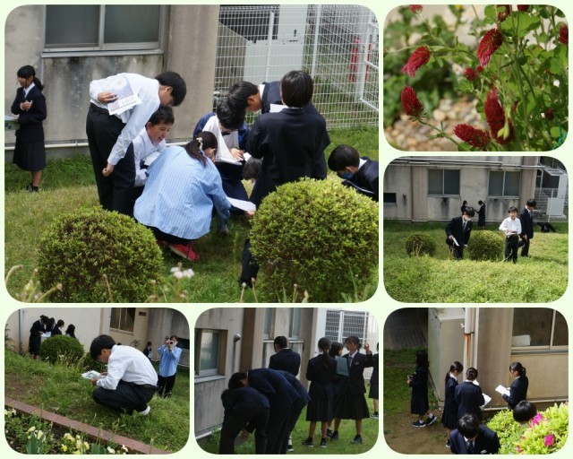 【1年生】理科 「これ、なんていう花だろう?」校内の植物を観察