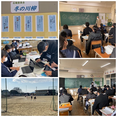 明治時代のまとめの学習、国語の段落分けの学習、理科の電磁誘導の学習、体育の持久走などに取り組んでいます。