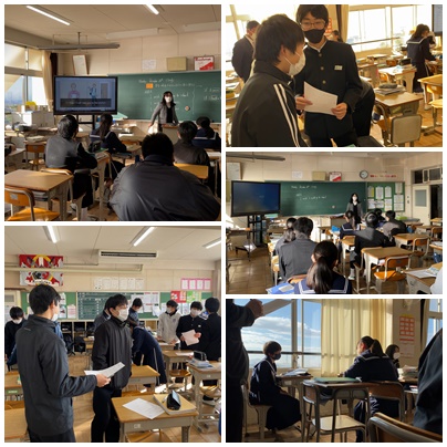 3年生の英語で研究授業を行いました。Ifのような仮定法を用いた文を使って、仲間と尋ね合う活動を行いました。相手の考えをしっかり聞いて、自分の考えを伝える姿がありました。