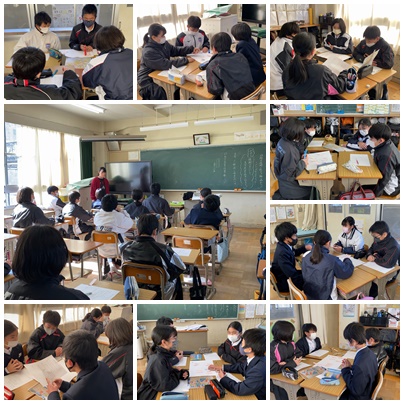 1年生の国語で研究授業を行いました。「根拠をもとにして自分の意見を相手に伝えよう」をめあてに、よい話し合いについて個人で、また、グループで意見を交わしました。「なるほど!」「それいいね!」など、いい聞き方をしている生徒がたくさんいました。