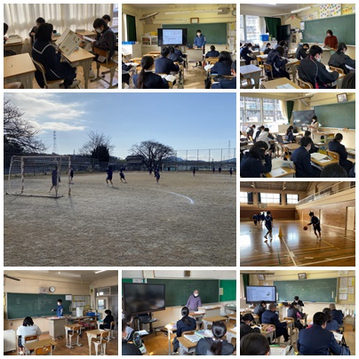 理科の水蒸気の変化についての学習、数学の立体の体積についての学習、体育のバスケットボールやハンドボールの学習などに取り組んでいます。今日から3年生は私立高校の一般入試です。頑張ってください!